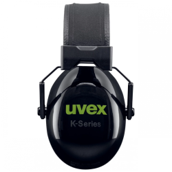 Coquille antibruit pliable uvex K10 ; serre-tête matelassé ; tampons absorbeurs en mousse à mémoire de forme.